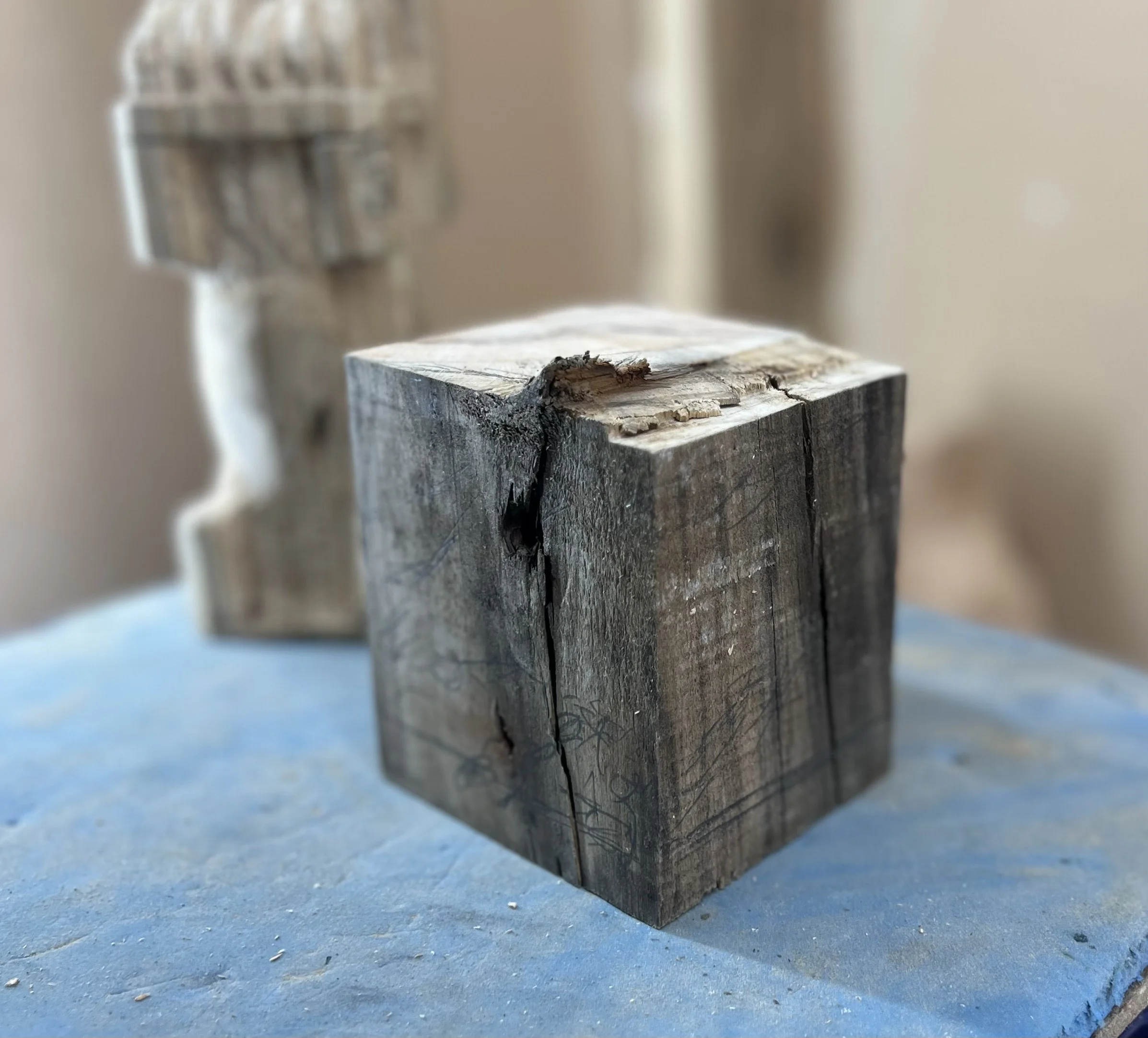 The block of wood was from an old fence post. it was weathered, worn, and tough as nails… and, I felt, it had a lesson in it for me (if I could help that insight come to the surface).
