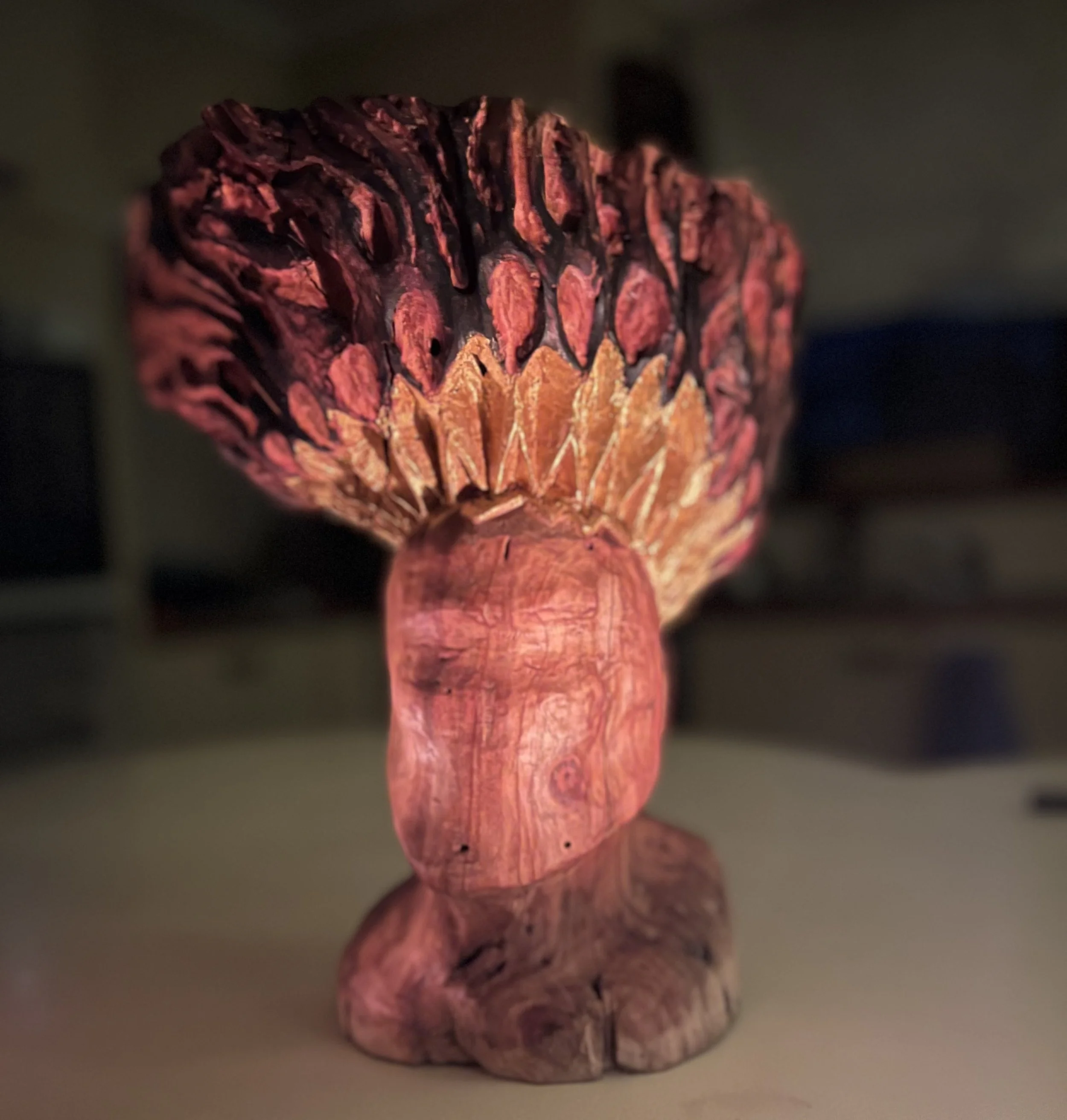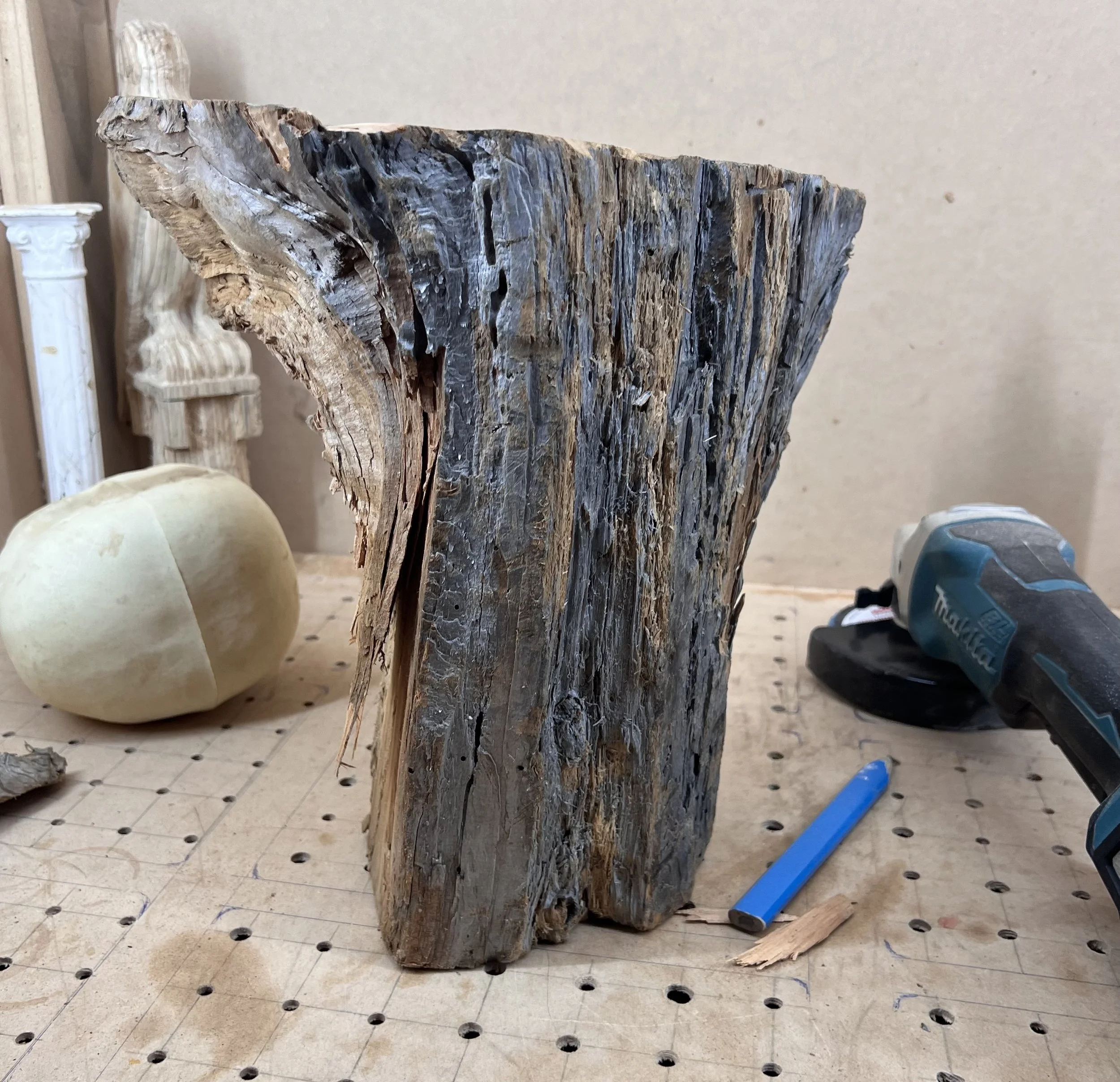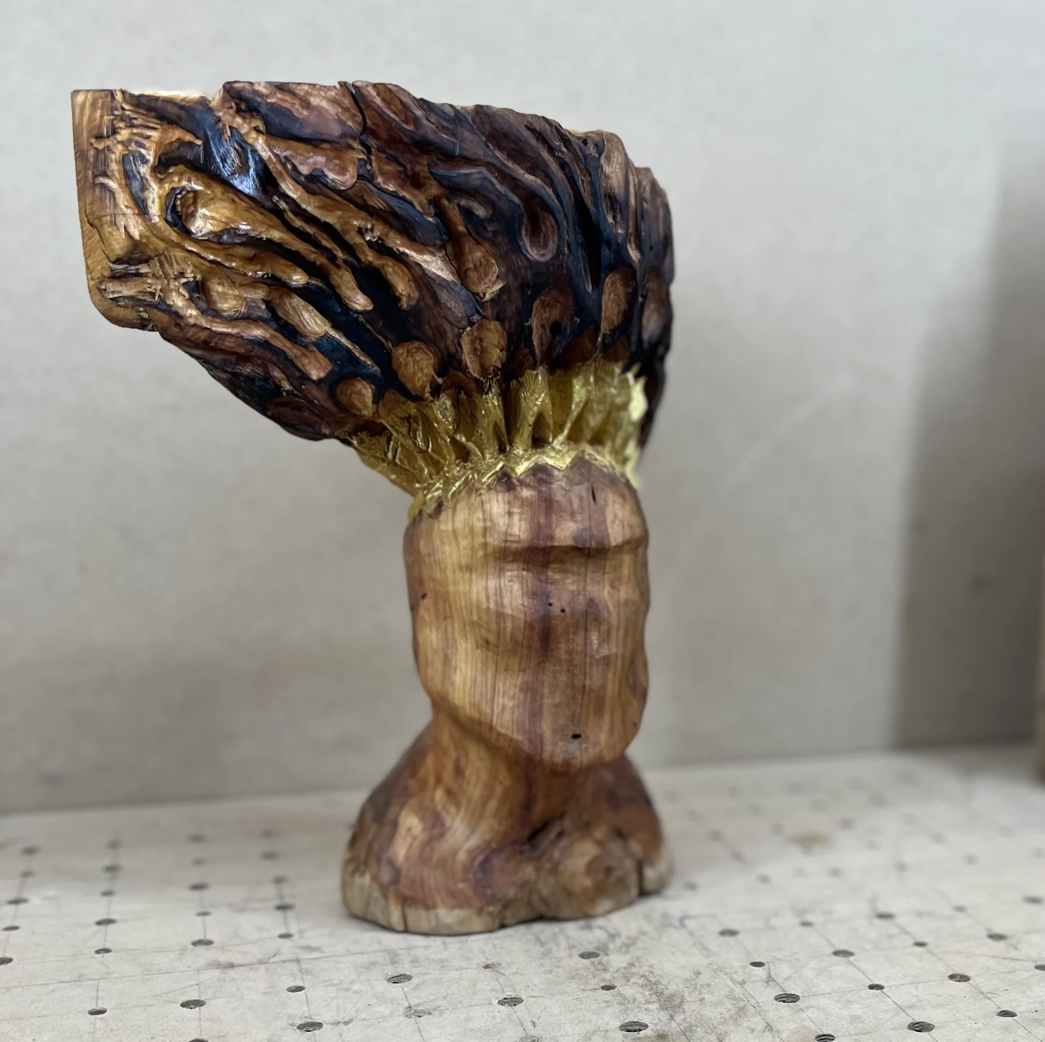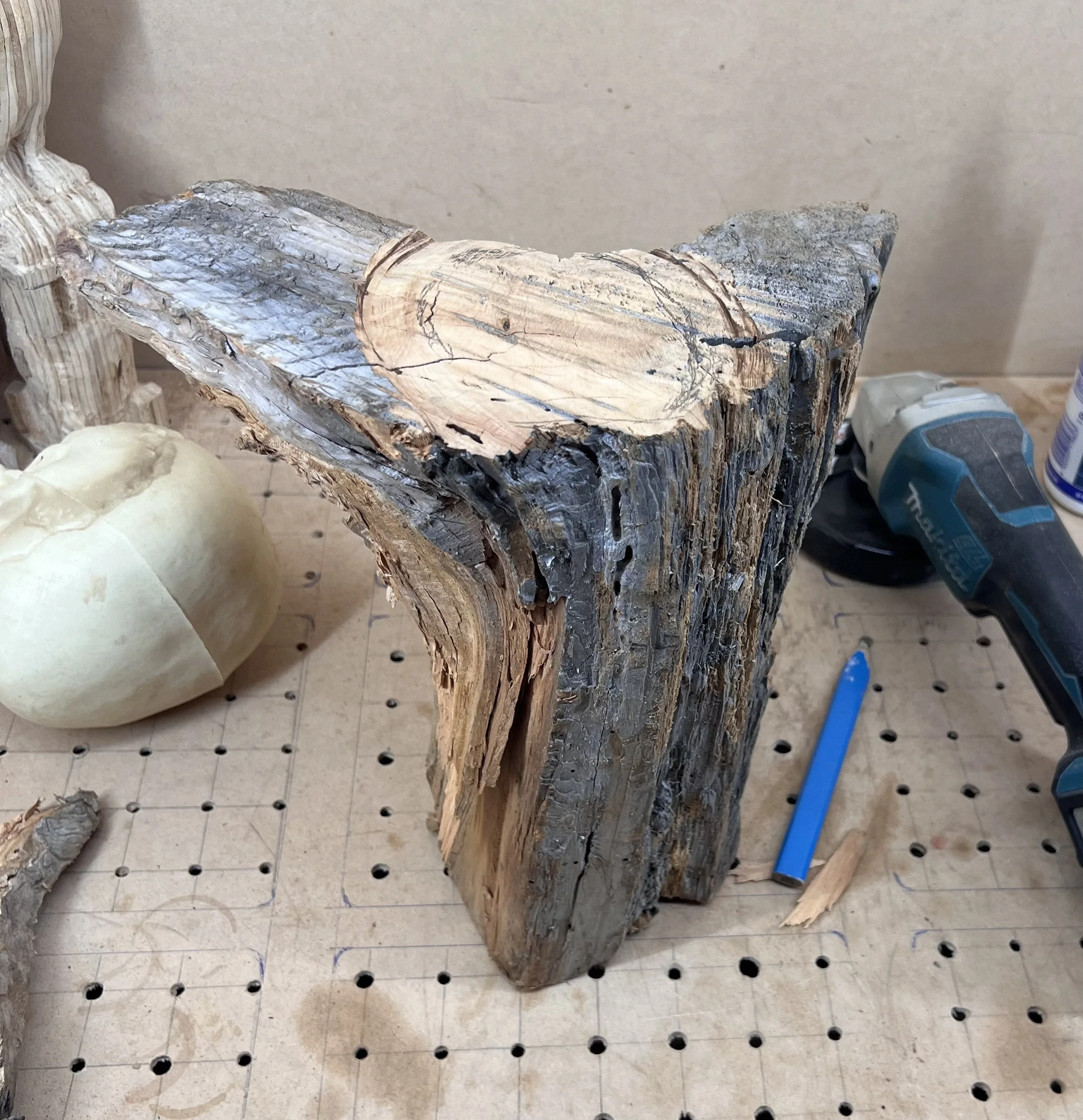 The raw material for my sculpture, well, like so many moments in our lives, I had almost given away to the fire. It was hidden in an armload of wood I brought in to put in the fireplace.