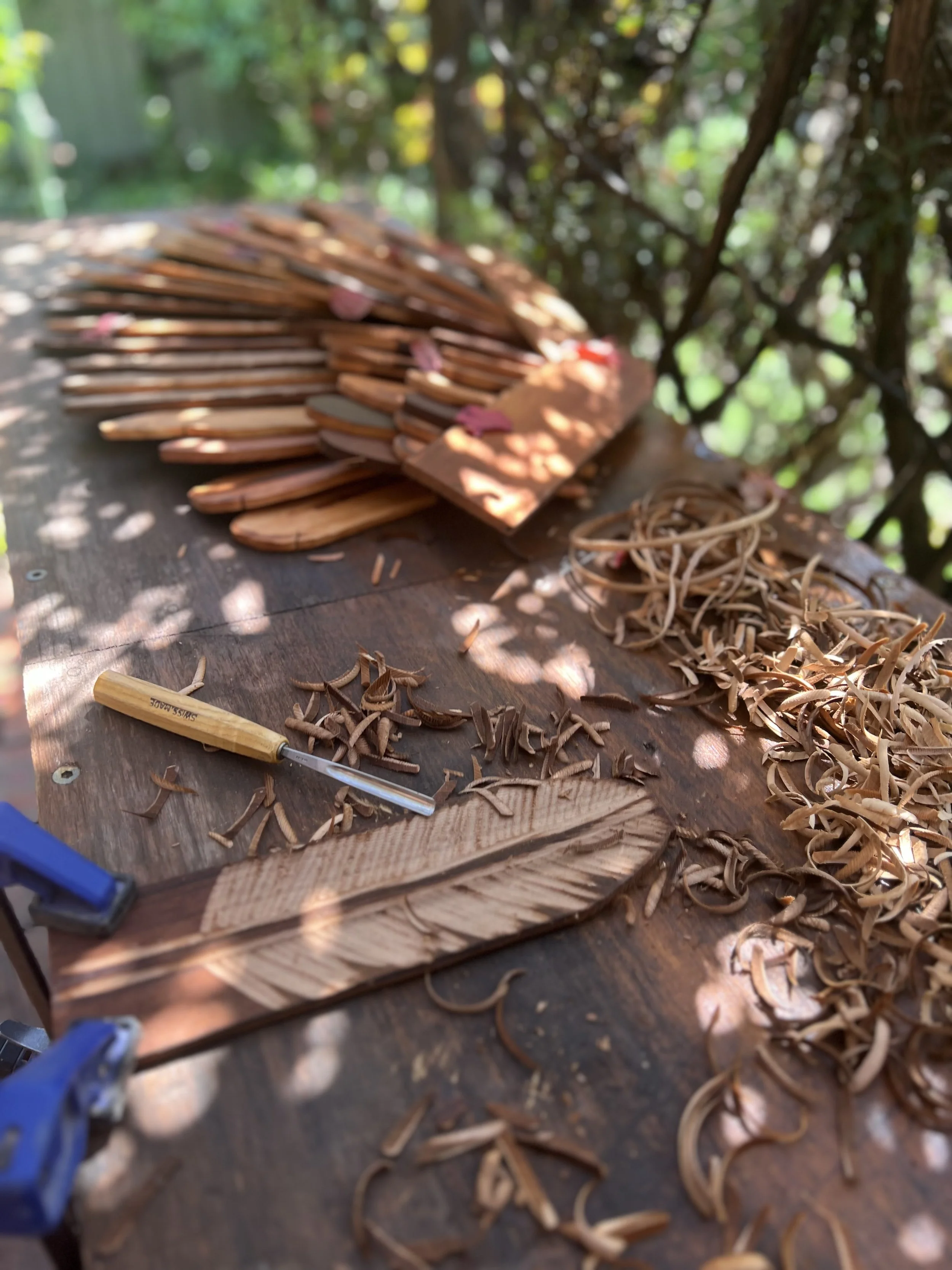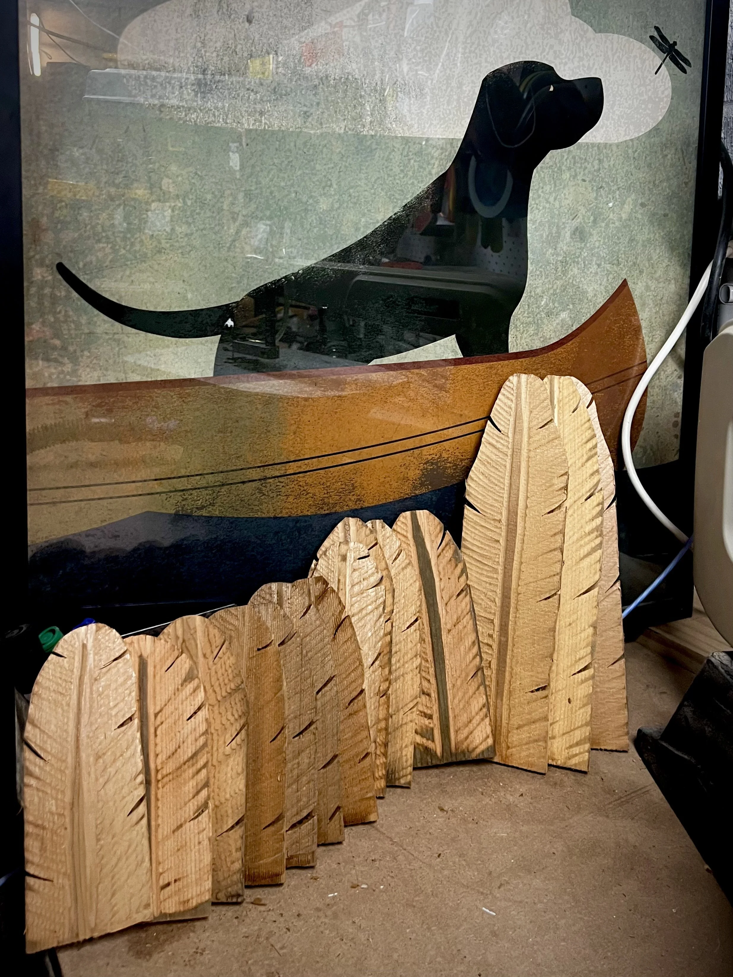 That takes time, but it’s not so different than in the woodshed, where the Work is, sometimes, painfully slow. Each feather carved, refined, adjusted… all in the knowledge that this is just the first rough shaping, there are still many more days of work ahead.