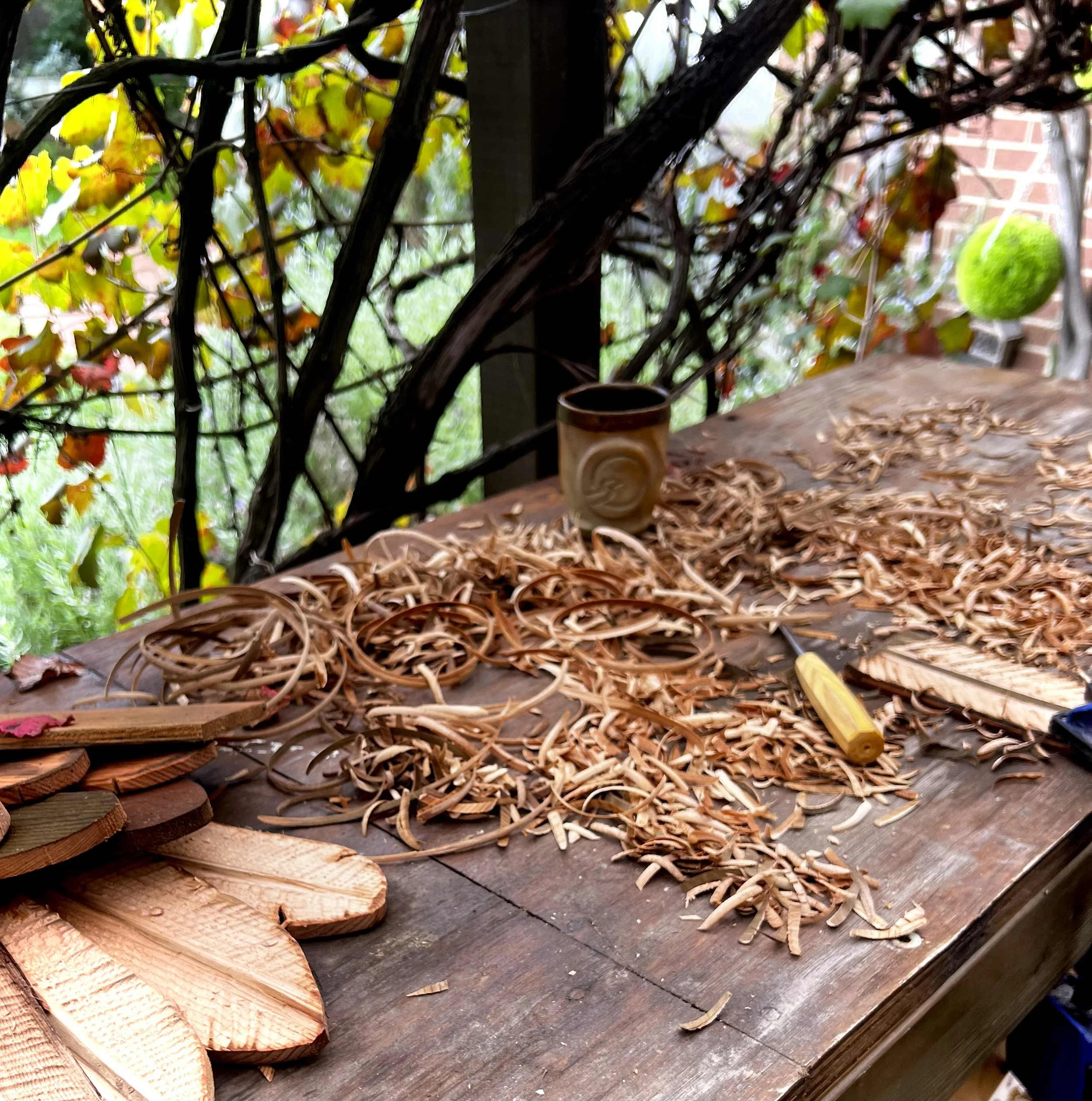 As I carved, I thought of about this, and the material, reclaimed cedar paneling, that I was working with. Still rich in aroma and colour, and texture, and material that had already had already lived a life. Material that, almost was passed over as having value.